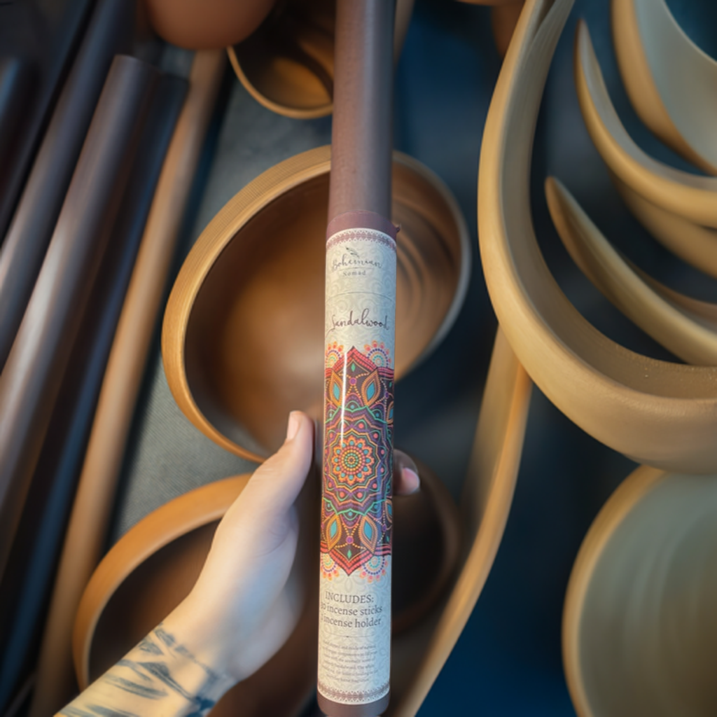 Agregue hoy el incienso con soporte de sándalo Bohemian Nomad a sus suministros para el cuidado del hogar y experimente el relajante aroma del sándalo en la comodidad de su propio espacio.