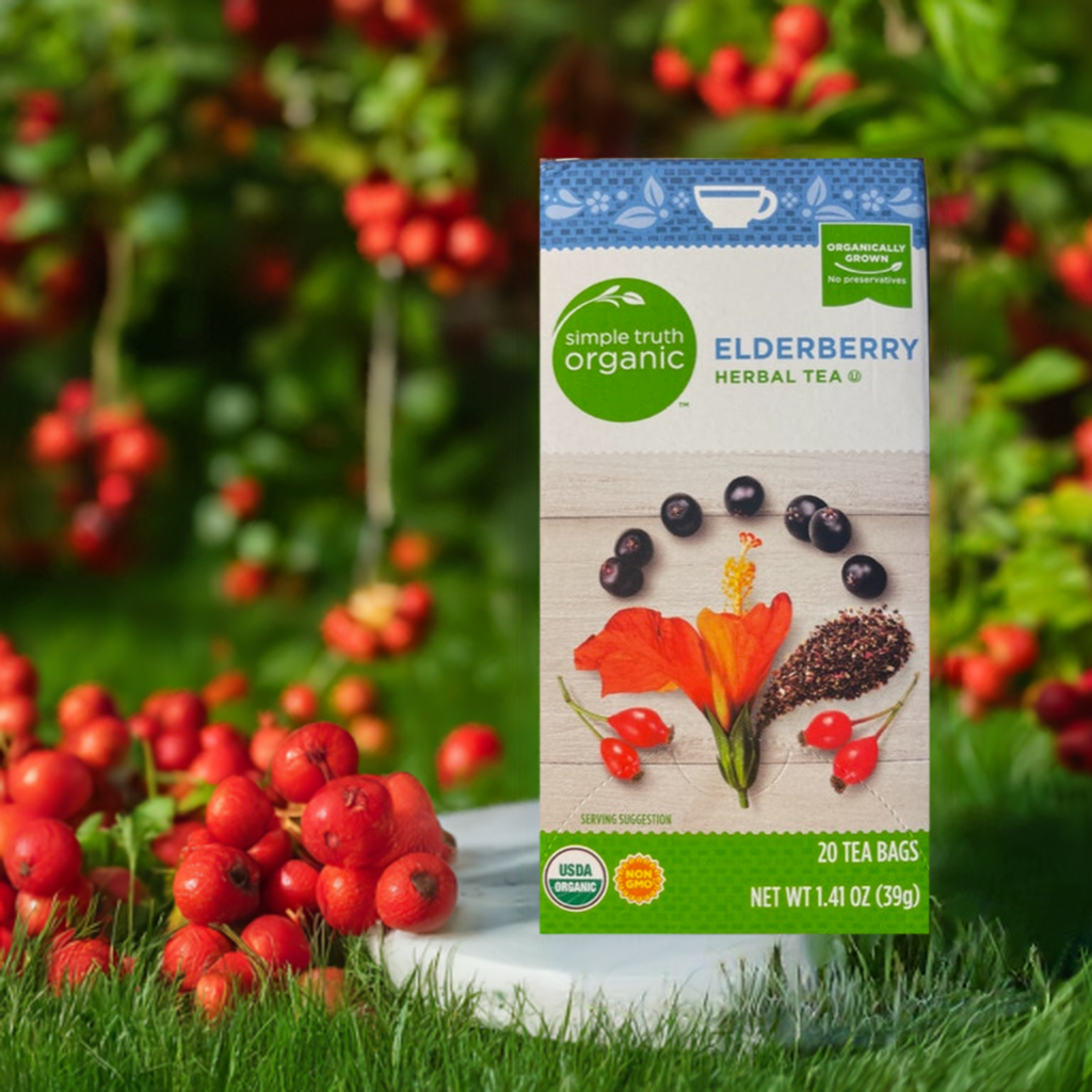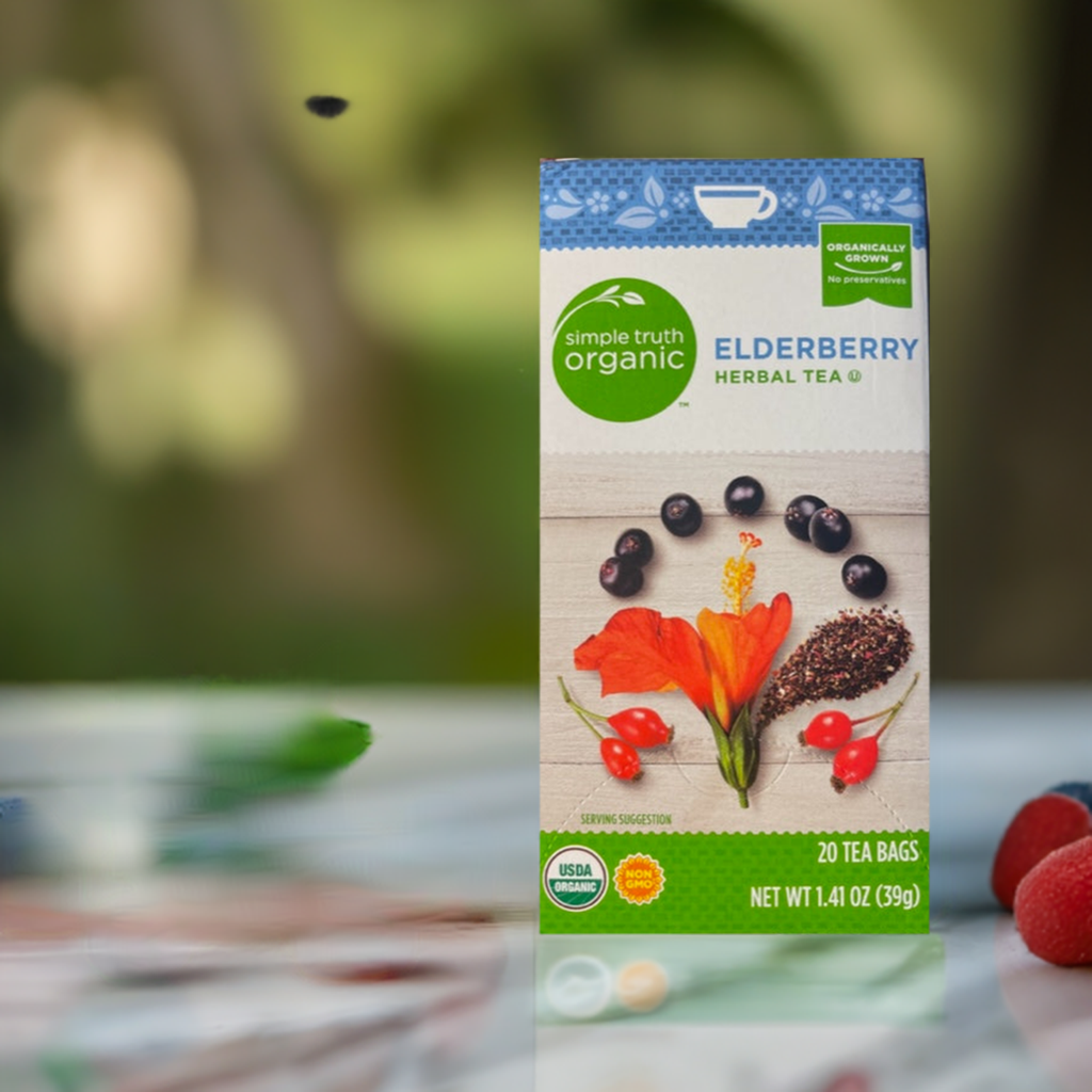Elaborado con una deliciosa mezcla de hibisco, escaramujo y baya de saúco realzada con regaliz aromático y cáscara de naranja, nuestro té de hierbas de saúco orgánico Simple Truth es delicioso caliente o helado.