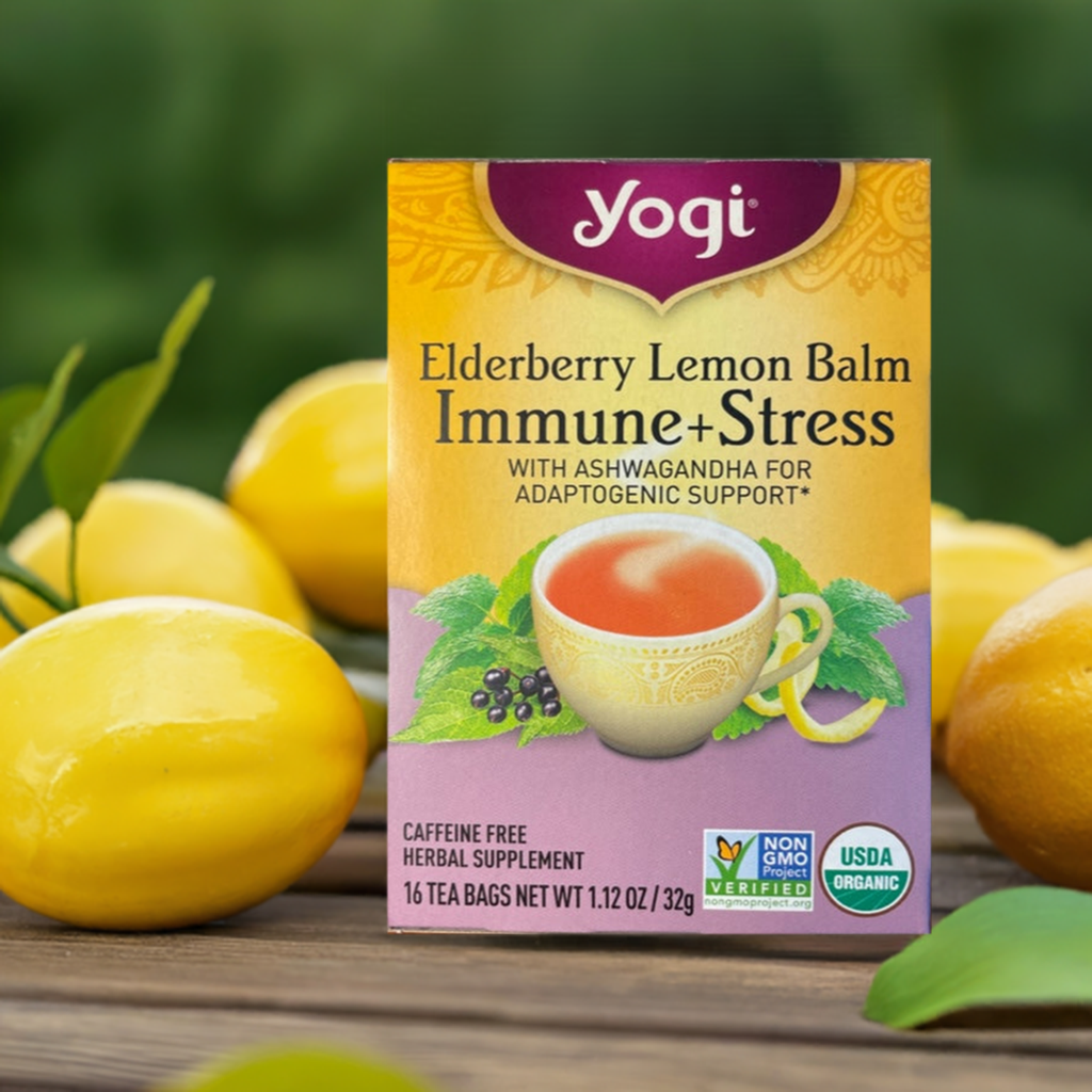 Té de hierbas Yogi Saúco Bálsamo de limón Inmune + Estrés con Ashwagandha para apoyo adaptógeno