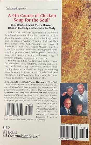 Jack Canfield and Mark Victor Hansen, the world's best-loved motivational speakers, invite you to join them for another satisfying feast of inspiring stories and life-affirming wisdom. This time, Jack and Mark have joined forces with America's first couple of kindness, Hanoch and Meladee McCarty. Together, these four inspiring literary chefs have gathered time-tested recipes for success and happiness, fresh anecdotes of sharing and caring, and savory sprigs of honesty, integrity, respect and self-esteem.
