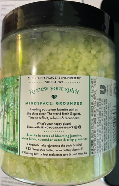 White birch & jasmine soaking salts. Soothing aromatic salts that rejuvenate the body and mind. Relaxing bath or foot soak for sore, tired muscles. The natural way to heal with shea butter, cocoa butter and vitamin E. Find your happy place. Net wt. 20 oz.