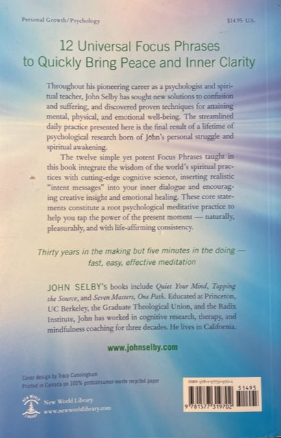 The twelve simple yet potent Focus Phrases taught in this book integrate the wisdom of the world's spiritual practices with cutting-edge cognitive science, inserting realistic "intent messages" into your inner dialogue and encouraging creative insight and emotional healing. These core statements constitute a root psychological meditative practice to help you tap the power of the present moment - naturally, pleasurably, and with life-affirming consistency.